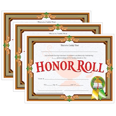 Hayes Publishing Honor Roll Certificate, 30 Per Pack, 3 Packs (H-VA612-3)