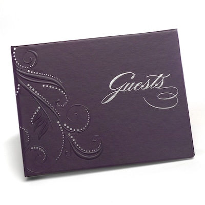 HBH™ Swirl dots guest book in purple color gives your visitors a beautiful place to share their well-wishes and records up to 600 signatures.