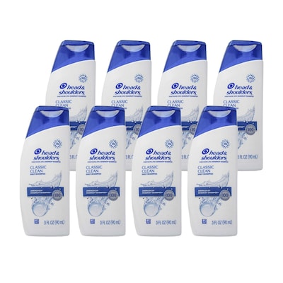 Head & Shoulders Classic Clean Shampoo, 3 oz Travel Size Bottle, 8 Bottles/Bag, 18 Bags/Carton