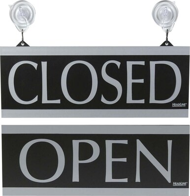 Headline Century Series "OPEN/CLOSED" Office Sign, 5"x13", Black/Gray (4246)