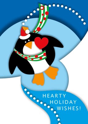 Hearty Holiday Wishes Penguin Holiday Greeting Cards, With A7 Envelopes, 7" x 5", 25 Cards per Set