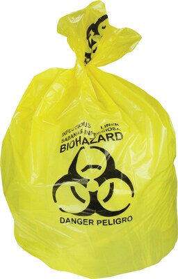 Dispose of infectious waste safely with these yellow Heritage printed healthcare biohazard bags.