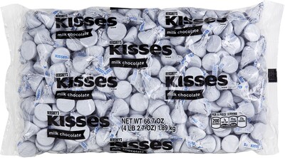 - Bulk size bag contains 66 ounces of KISSES Milk Chocolates, enough for all your office needs