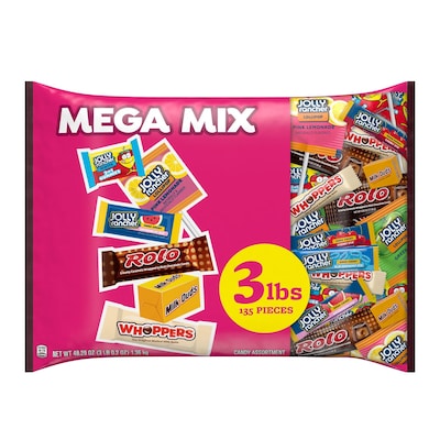 Enjoy a delicious chocolaty treat anywhere and anytime with Hershey Mega Mix assorted chocolate and sweets candy, perfect for concession stands and fundraisers. Offering six crowd-pleasing favorites, this candy assortment is perfect for sharing with family, friends, teammates or co-workers. Take this bulk candy bag into the office break room, pour some individually wrapped candies into your jar at home or take a bag to your next sports game to celebrate the win. Hershey candy bars are also great for parties, holidays, lunches, desserts, picnics, tailgate parties and more. You really can't go wrong when you have candy sweets on hand. The assorted bag of chocolate and fruit-flavored candies contains JOLLY RANCHER MISFITS, lollipops and hard candy, ROLO chocolate caramel candy, MILK DUDS caramel chocolate candy and WHOPPERS malted milk balls candy. Add them to your holiday festivities, too! Stuff stockings, Easter baskets, Halloween candy bowls and Valentine's Day gift bags.