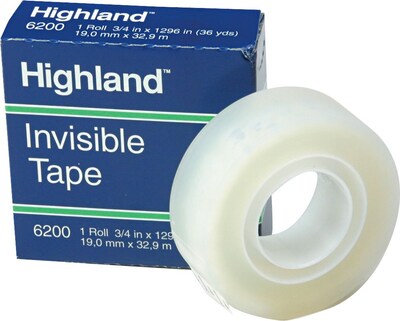 Highland Invisible Clear Tape, 0.75" x 36 yds., 1" Core, Invisible (6200341296)