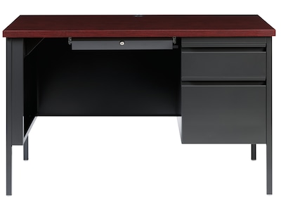 Hirsh 48"W Single-Pedestal Desk, Charcoal/Mahogany (20093)