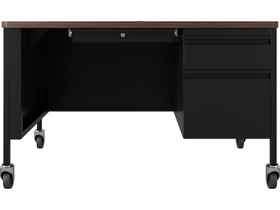 Hirsh 48"W Single-Pedestal Mobile Teacher's Desk, Black/Walnut (22646)