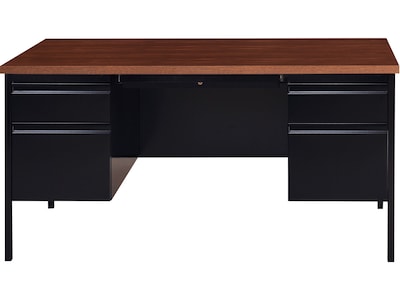 Quill Brand® Modular Double Pedestal Desk, Black/Walnut, 30"x60"