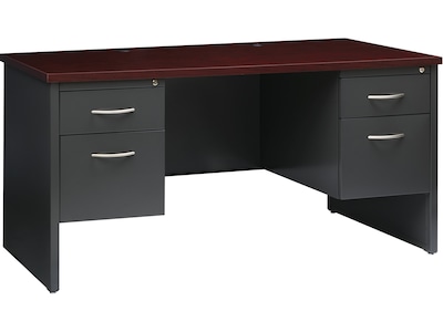 HON Metro Classic 60" Double Pedestal Desk, Mahogany/Charcoal (HONP3262NS)