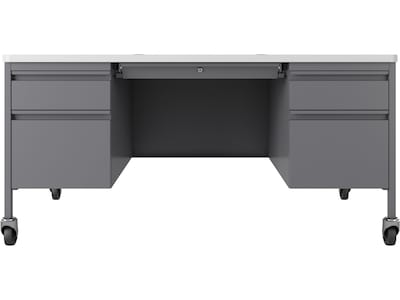 Hirsh 60"W Double-Pedestal Mobile Teacher's Desk, Platinum/White (22649)