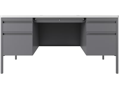 Hirsh 60"W Double-Pedestal Teacher's Desk, Platinum/White (22645)