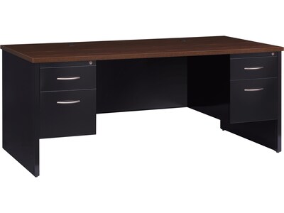 Hirsh 72"W Double-Pedestal Desk, Black/Walnut (20531)