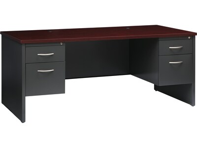 Hirsh 72"W Double-Pedestal Desk, Charcoal/Mahogany (20532)