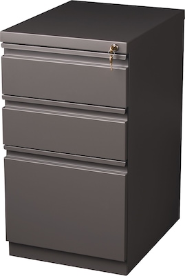 Roll this commercial grade mobile pedestal file cabinet from work space to work space thanks to hidden casters that provide easy maneuverability. Solve organizational issues by keeping frequently used files within reach. Three configurations available as Box/Box/File, File/File, and Box/File, designed suit to your storage needs. Use the box drawers to keep essential office supplies, such as pens, sticky notes, staplers and paperclips tidy. The file drawers accommodates letter-size hanging file folders. Multiple color finishes and contemporary designs let these attractive and useful file cabinets blend with virtually any office setting. Durable steel construction makes the mobile pedestal file cabinet tough enough to handle daily use in busy offices. Steel ball-bearing drawer suspensions make them easy to open and close. Each drawer fully extends to help you locate all of your items. Counterweights prevent tipping. A factory-installed lock secures all drawers to keep your contents private. For added confidence, this file cabinet meets or exceeds ANSI/BIFMA standards. Greenguard Gold certified. TAA Compliant.