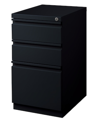 Hirsh HL10000 Series 3-Drawer Mobile Pedestal File Cabinet w/Full-Width Pull and Wheels, Letter-Width, Black, 20"D (18575)