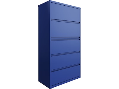 Hirsh HL10000 Series 5-Drawer Lateral File Cabinet, Locking, Letter/Legal, Classic Blue, 36" (24260)