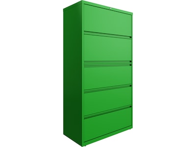Hirsh HL10000 Series 5-Drawer Lateral File Cabinet, Locking, Letter/Legal, Screaming Green, 36" (24259)