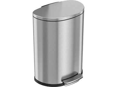 This HLS Commerical 13.2 gal. stainless steel semiround step trash can is tested and certified by FM Approvals, so it provides the compliance, protection, and style you need and want in your facilities. Bin fires are quickly extinguished with the special fire-retardant liner material and a tight lid design that restricts airflow to the interior of the bin, starving a flame of necessary oxygen. Designed to be as aesthetically pleasing as it is safe and easy to use, the elegant stainless steel bin complements any decor. The smooth and easy pedal requires minimal effort and is coupled with a soft and silent lid close. Emptying the trash is quick and clean with the removable inner bin.