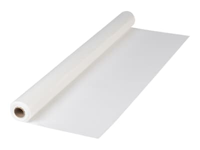 Protect tables from stains and other damage with this table cover roll. The white color provides a neat, clean appearance, and with 300 feet of material, large seminars, lunches and meetings are covered. This Hoffmaster table cover has a disposable design to make cleaning up after activities simple, and the plastic material prevents liquids from seeping through.