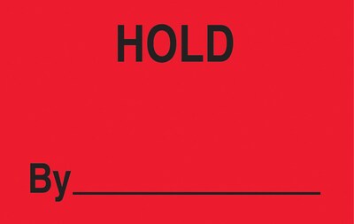 "Hold By ________" Labels, Red/Black, 5" x 3", 500/Rl