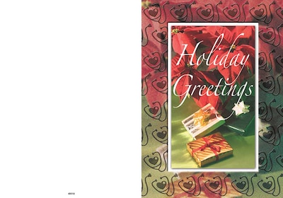 Holiday Greetings - presents - 7 x 10 scored for folding to 7 x 5, 25 cards w/A7 envelopes per set
