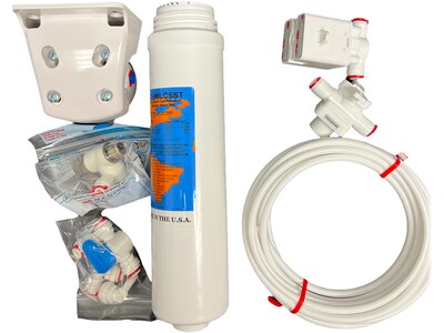 - Filter install kit comes with a leak-stop valve, 42 psi pressure reducer, filter, filter head, and connection equipment