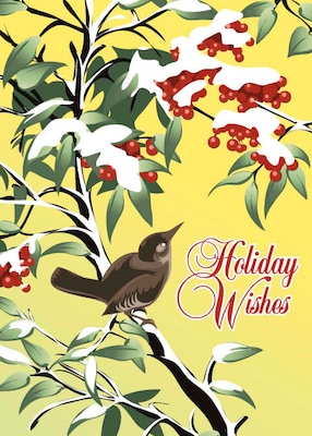 Holiday Wishes Bird On Tree Branch Holiday Greeting Cards, With A7 Envelopes, 7" x 5", 25 Cards per Set