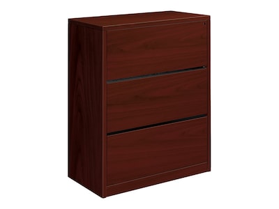 HON 10500 Series 3-Drawer Lateral File Cabinet, Locking, Letter/Legal, Mahogany, 36"W (H10517.NN)