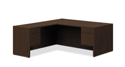 Build a hard-working workstation with 10500 Series laminate from HON, our bestselling desk collection. This righthanded 66"W x 78"D L-workstation with 3/4 pedestals create a hardworking, efficient executive workstation. Two box drawers provide convenient storage for office supplies, and two file drawers organize paperwork. Laminate finish color is Mocha.