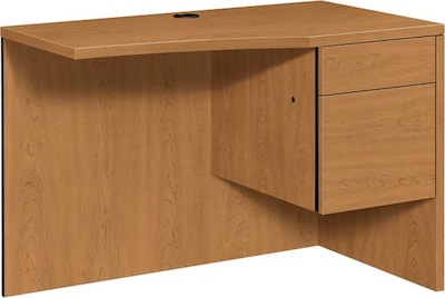 HON® 10500 Series Curved left return in harvest color measures 29 1/2" x 42" x 24" and has convenient locking one box/file drawer.