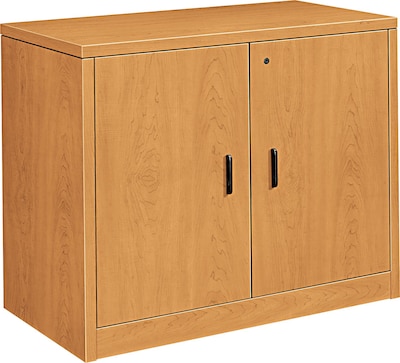Get storage that lasts despite your daily demands with this HON storage cabinet. Place office printers, fax machines, or even your coffee pot on top of this storage cabinet without scratching or staining the surface thanks to its scratch- and stain-resistant, thermal-fused multi-ply laminate. If one storage cabinet doesn't provide you enough space, stack another on top, the durable inner-frame construction can handle the extra weight.Added Security