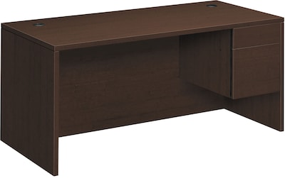 HON 10500 Series Right Pedestal Desk, 1 Box/1 File Drawer, 66"W, Mocha Finish