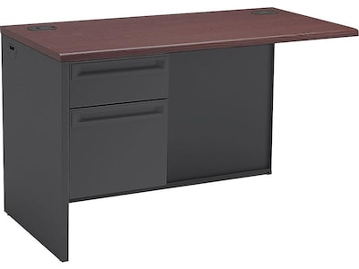 Receive both durability and style with this left-pedestal desk return. Constructed from steel with a mahogany and charcoal finish, this desk is able to withstand frequent use and relocation and offers a sleek look. With one file drawer and one utility drawer, this desk is perfect for organizing any desk space. This HON 38000 Series desk return is equipped with integrated wire organization for convenience.