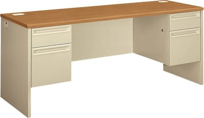 The best-selling steel desking from HON-America's metal desking leader HON 38000 Series Double Pedestal Credenza with Kneespace, 2 Box / 2 File Drawers, 72"W x 24"D x 29-1/2"H, Harvest Laminate, Putty Finish