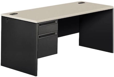 HON 38000 Series Left Pedestal Desk 66"W, Gray/Charcoal, 29 1/2"H x 66"W x 30"D
