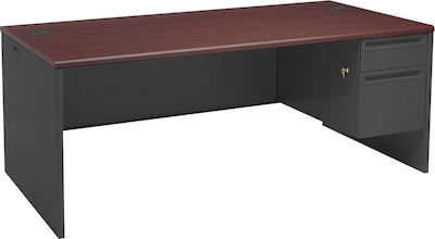 HON® 38000 Series 72'' Right Pedestal Desk, Mahogany/Charcoal (H38293RNS)