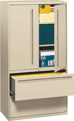 HON 700 Series 2 Drawer Lateral File Cabinet w/Roll-Out & Posting Shelves, Putty, Letter/Legal, 36"W (HON785LSL)