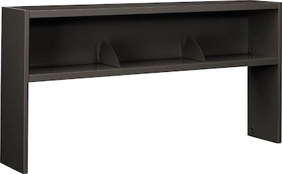 The popular HON 38000 Series is America's best-selling steel desk collection. This 72"W stack-on hutch with open shelf can be mounted to any HON 38000 Series 72"W base unit to increase storage capacity above the worksurface. The scratch-, spill- and stain-resistant laminate withstands heavy use, and the heavy-duty construction is built to last. Flipper doors are available for added privacy. Finish color is Charcoal.