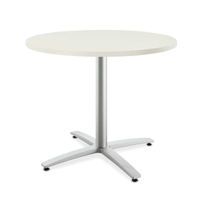 HON Between Round Table, Seated Height X-Base, 36"D, Silver Mesh Laminate, Textured Silver Finish