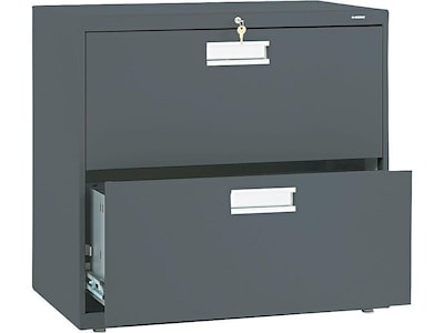 HON Brigade 600 Series 2-Drawer Lateral File Cabinet, Locking, Letter/Legal, Charcoal, 30"W (H672.L.S)