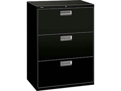 HON Brigade 600 Series 3-Drawer Lateral File Cabinet, Locking, Letter/Legal, Black, 30"W (H673.L.P)