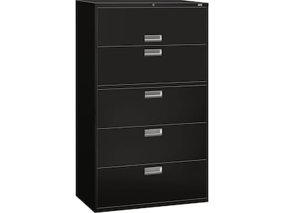 HON Brigade 600 Series 5-Drawer Lateral File Cabinet, Locking, Letter/Legal, Black, 42"W (HON695LP)