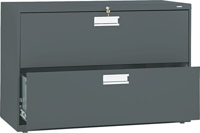 HON Brigade 600 Series Lateral File Cabinet, A4/Legal/Letter, 2-Drawer, Charcoal, 42"W