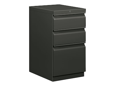 Organize a work space with this office mobile-pedestal cabinet. Three box drawers with ball bearing suspension provide easy-access storage for office supplies, and the file drawer at the bottom allows for organization of documents and hanging file folders. Place this 15-inch HON Brigade cabinet under a 29.5-inch-high desk, move it easily with its swivel back casters and lock it before leaving your desk.