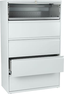HON® Brigade™ 800 Series 5-Drawer 42" Lateral file cabinet in light gray color is a perfect choice to organize the documents and records in home/office for quick as well as easy access.