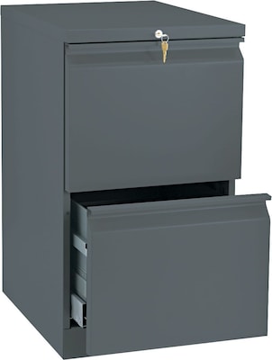 HON Brigade™ Series 20" Vertical mobile file cabinet in charcoal color features 2 drawers and is designed to accommodate letter size files or folders.