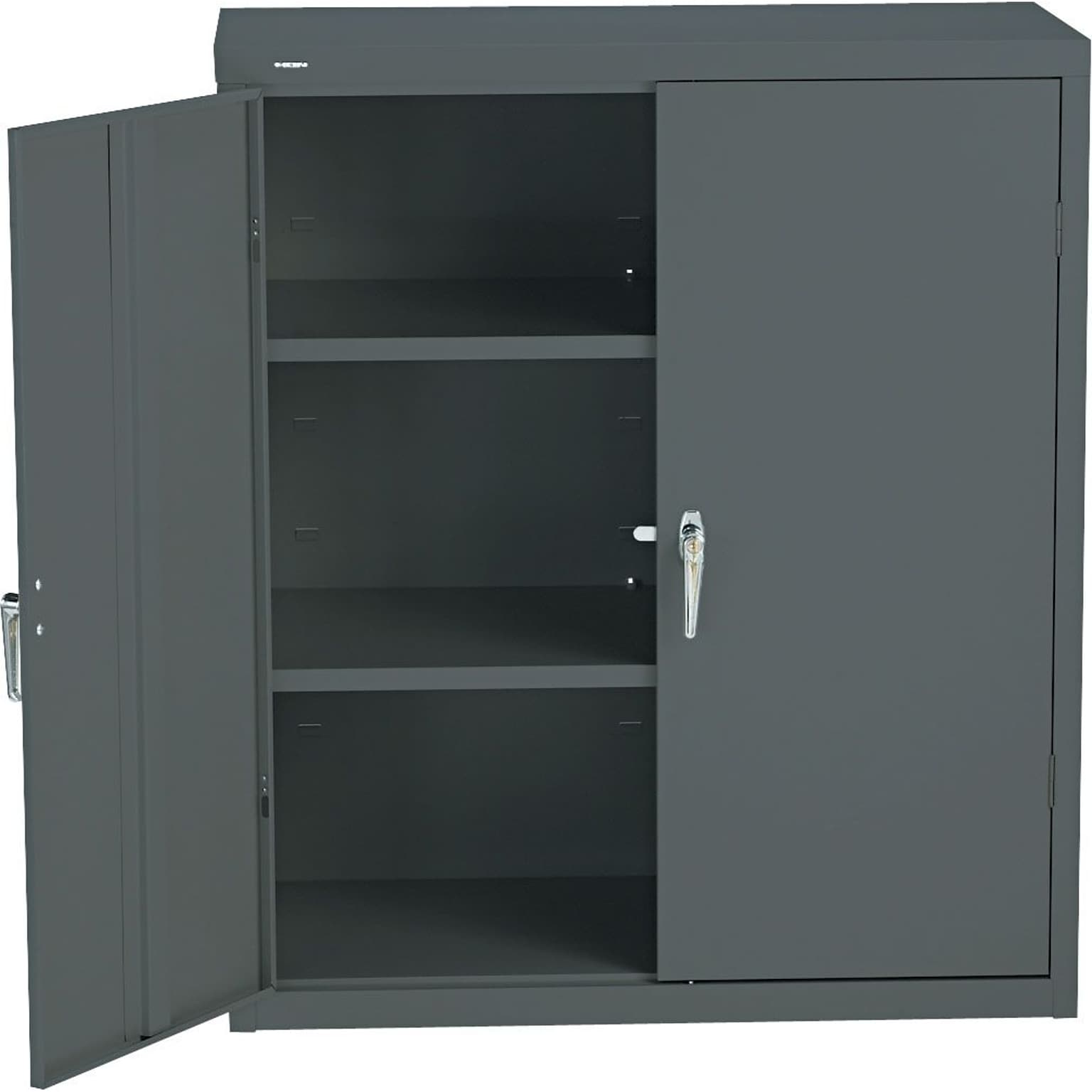 HON® Brigade® 3-Shelf assembled storage cabinet in charcoal color measuring 42" x 36" x 18" is made of industrial grade steel that help to resists marring/chipping and comes with reinforced base for stability.