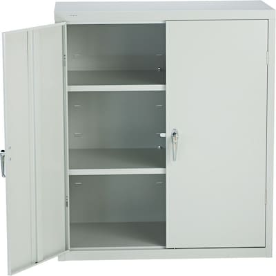 HON® Brigade® 3-Shelf assembled storage cabinet in light gray color measuring 42" x 36" x 18" is made of industrial grade steel that help to resists marring/chipping and comes with reinforced base for stability.