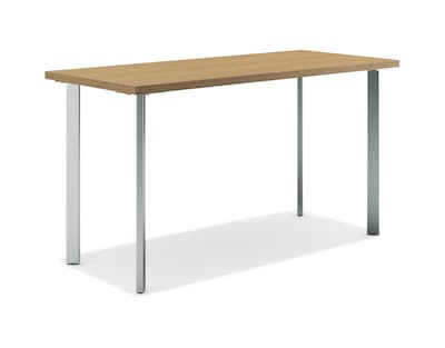 HON Coze Desk, Easy to Assemble, Natural Recon Surface with Silver Legs