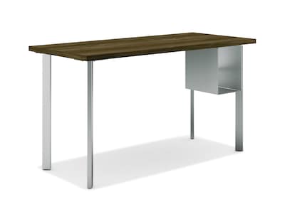 HON Coze Table Desk | 54"W x 24"D | Florence Walnut Laminate | Silver Leg Finish | U-Storage Included